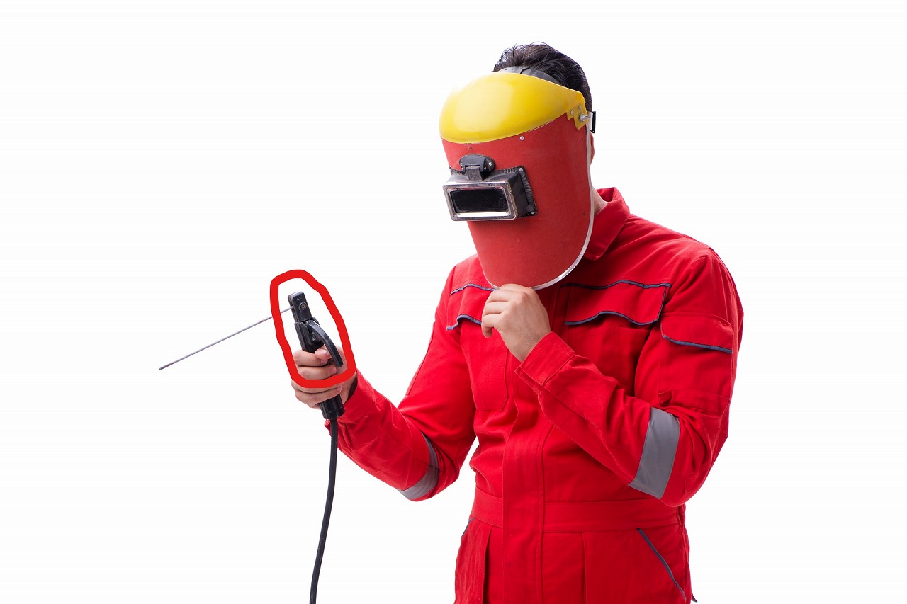 写真では判りにくいかもしれませんが、「ホルダー」赤丸で囲っている部分がクリップのような構造をしている為、「溶接棒」を挟むことができます。
