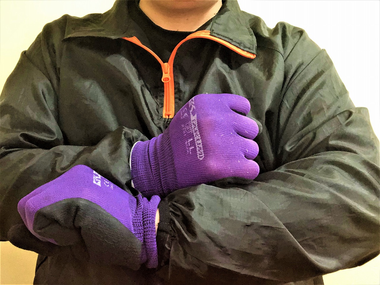 左手を横にして、右手の握りこぶしを左手に打ち付ける動作を2回行います。