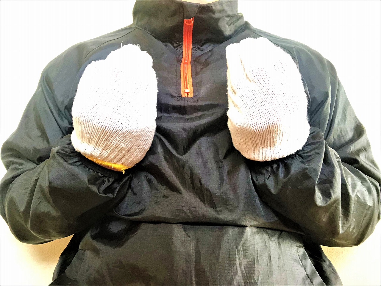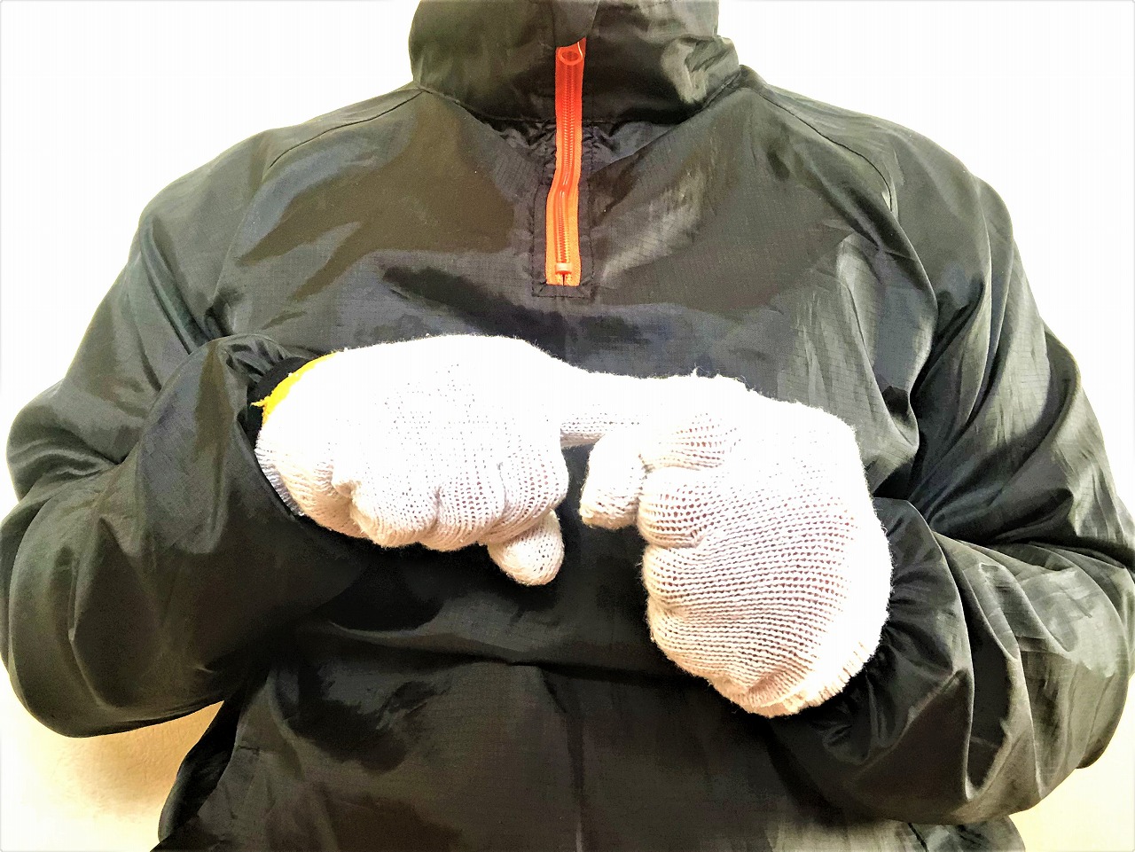 両手を体の前ですぼめた状態から、広げながら前に出します。