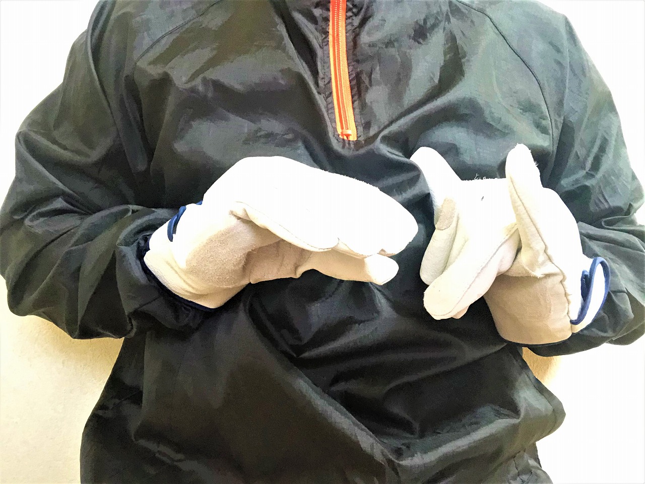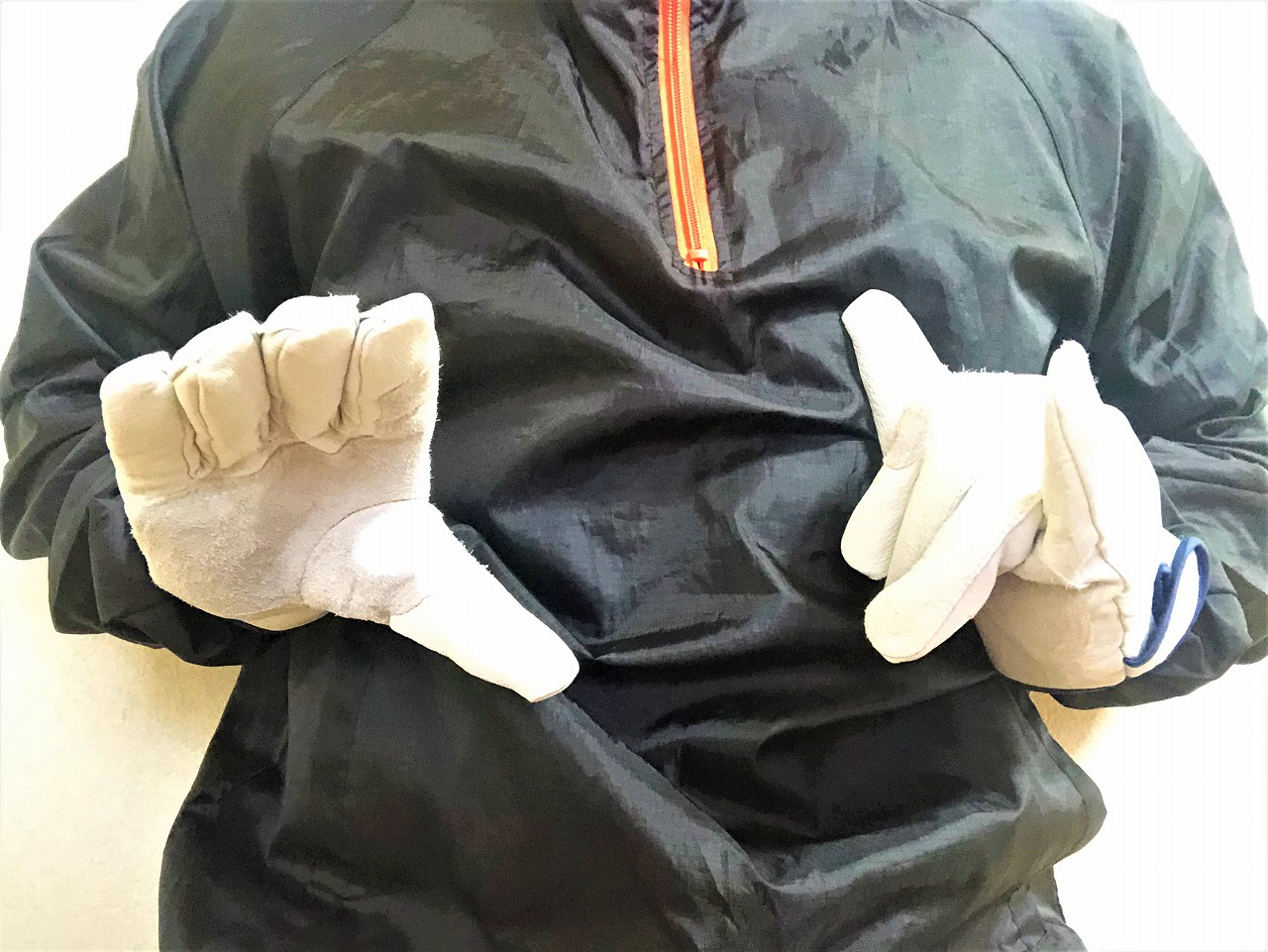 右手は親指と四指を少し離して、左手に近付ける時に、親指と四指を近付けます。
