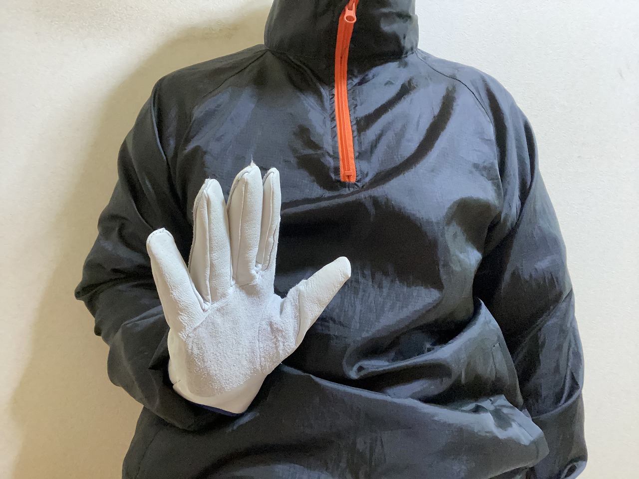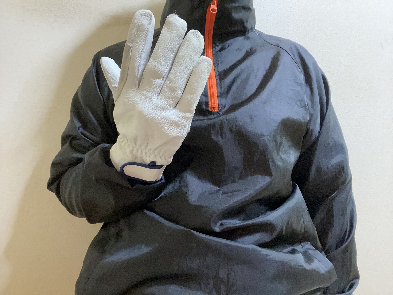 右手の指を少し曲げてから手の平を相手側に向けて、上に上げながら手の甲を相手側に向けて表現します。