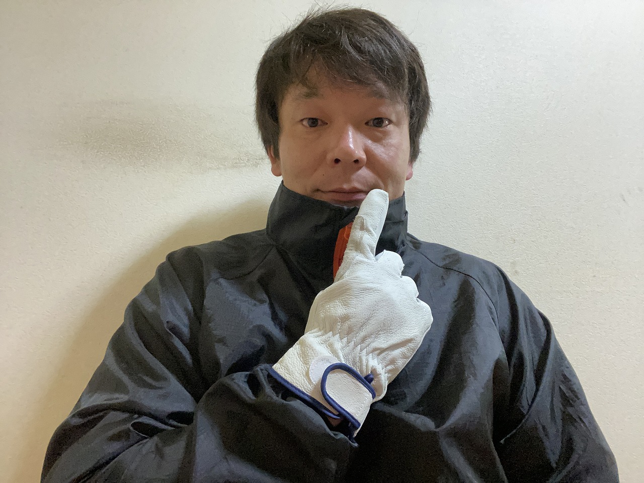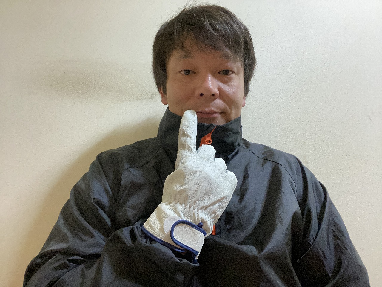 人差し指を下唇に持っていき、人差し指を下唇に添わす様に横に動かします。