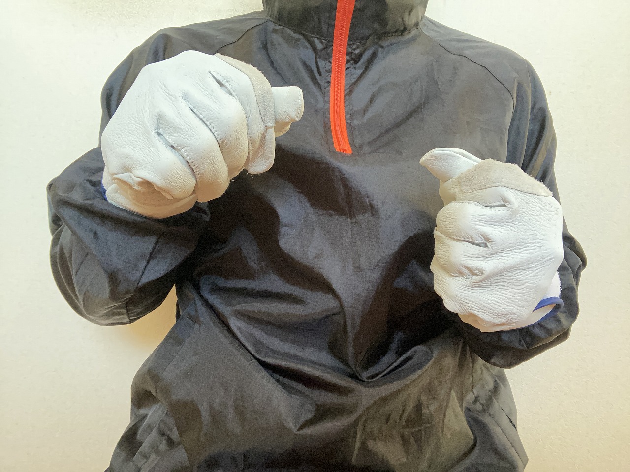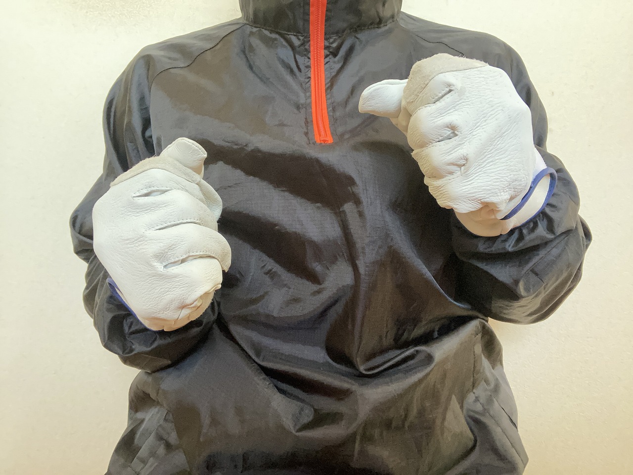 両手を軽く握って、10時10分の位置において、軽く動かして表現します。