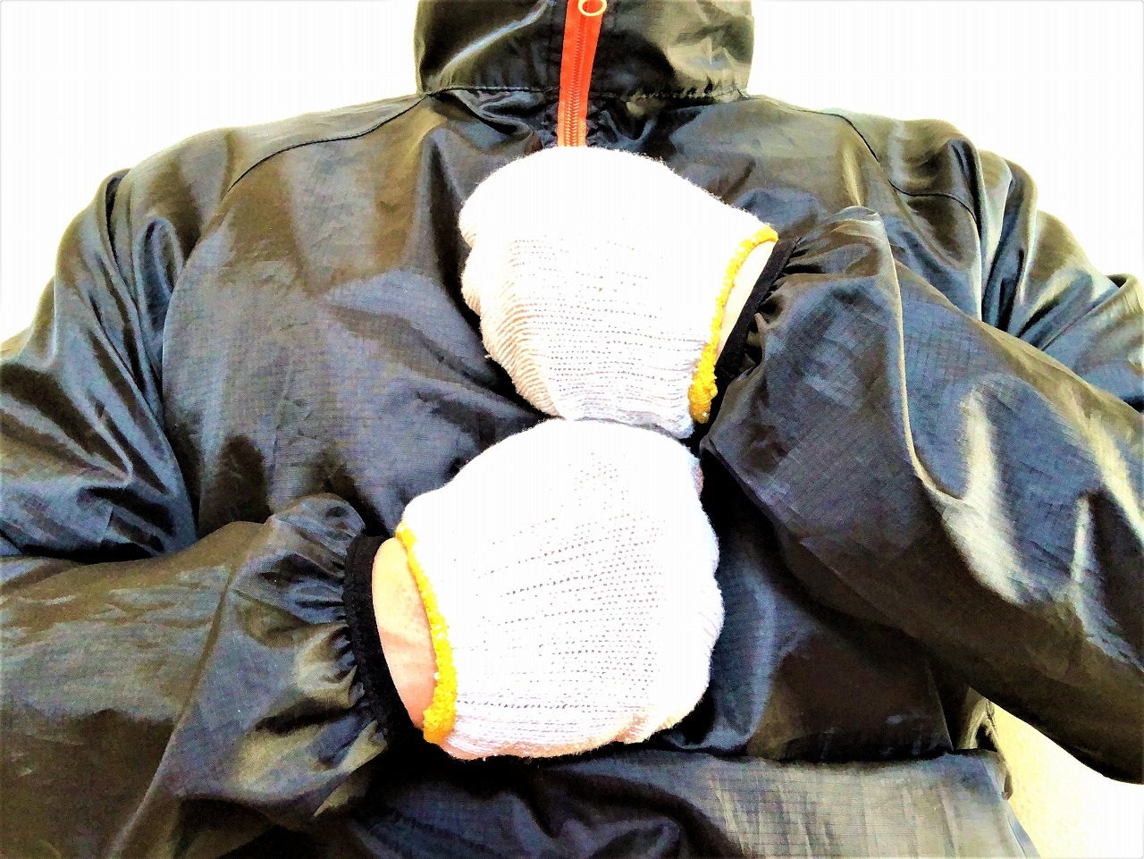 両手を広げた状態から、握りながら胸の前に持ってきて表現します。